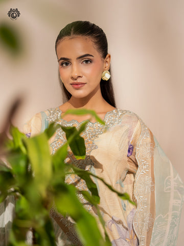 • Duppata: Digital Printed Bamber Chiffon Embroidered Cut-Work
