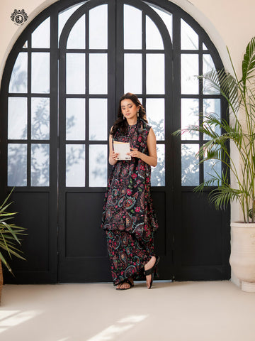 • Duppata: Digital Printed Bamber Chiffon Embroidered Cut-Work
