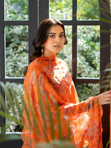 • Duppata: Digital Printed Bamber Chiffon Embroidered Cut-Work