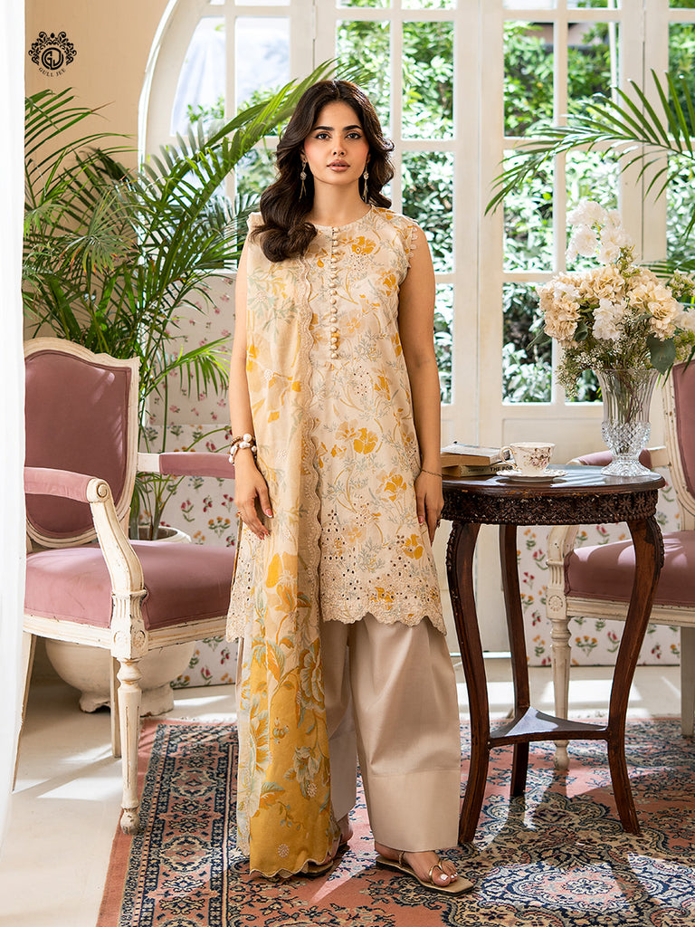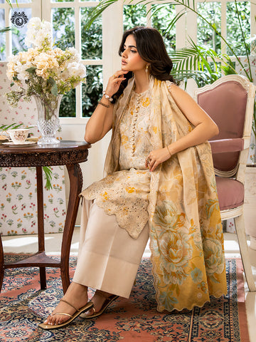 • Duppata: Digital Printed Pure Lawn Sequin Embroidered Cut-Work