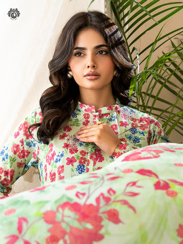 • Duppata: Digital Printed Pure Lawn Sequin Embroidered Cut-Work